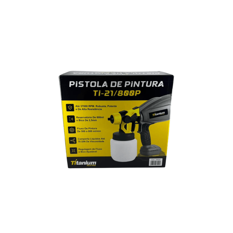 PinturaPistola de Pintura ElétricaPistola de Pintura Elétrica HVLP 800W 21V TI-21/800P com Reservatório 800ML - Titanium
